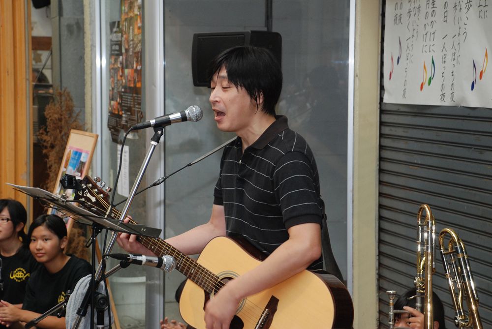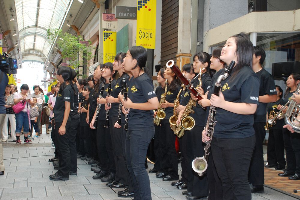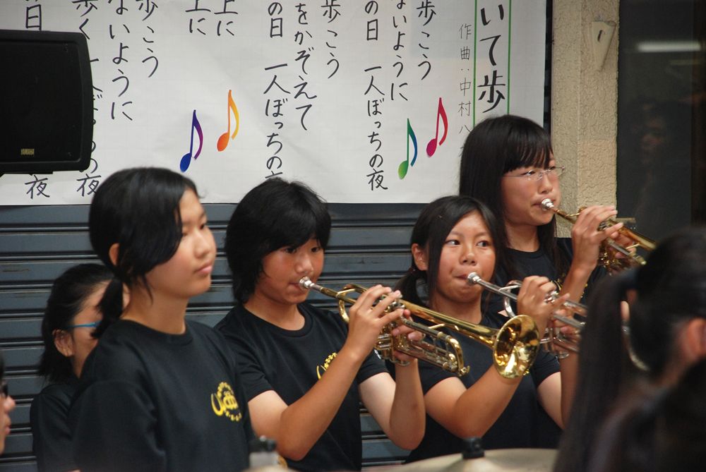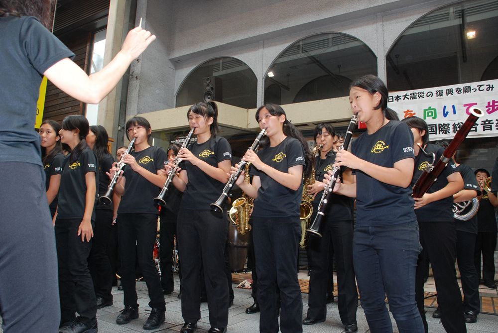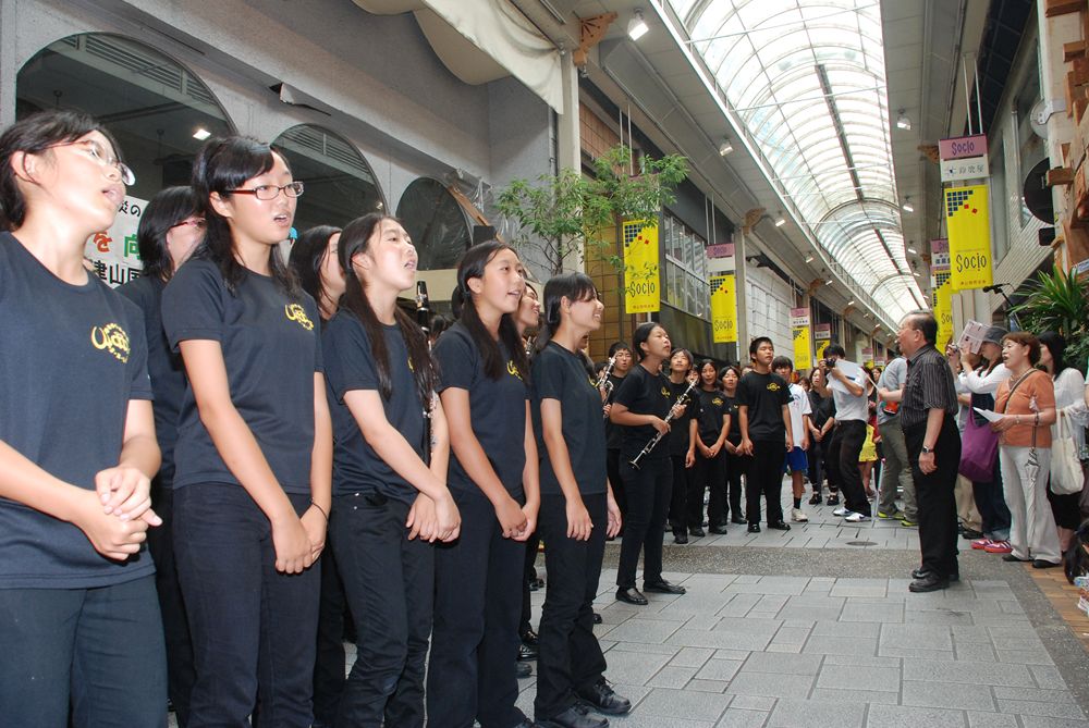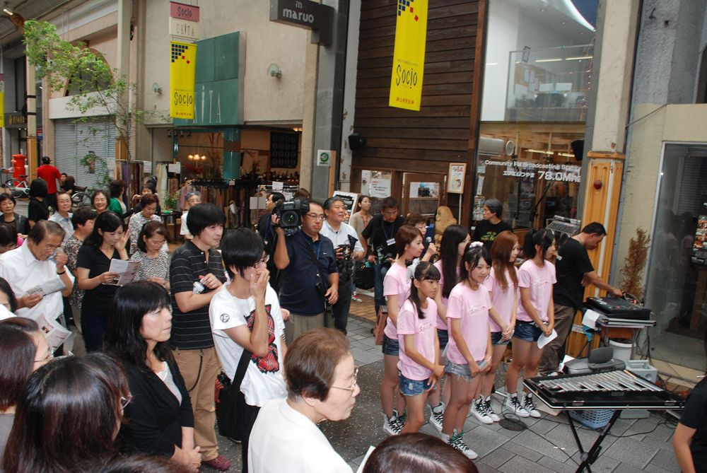 第8回津山国際総合音楽祭の開幕初日、津山市商店街ソシオ一番街にて市民が一斉に「上を向いて歩こう」を合唱しました。コミュニティーFM局「エフエムつやま」で生放送され、たくさんの歌声が輪となり東日本大震災の被災地へ力強い応援メッセージを送りました。