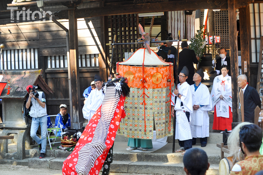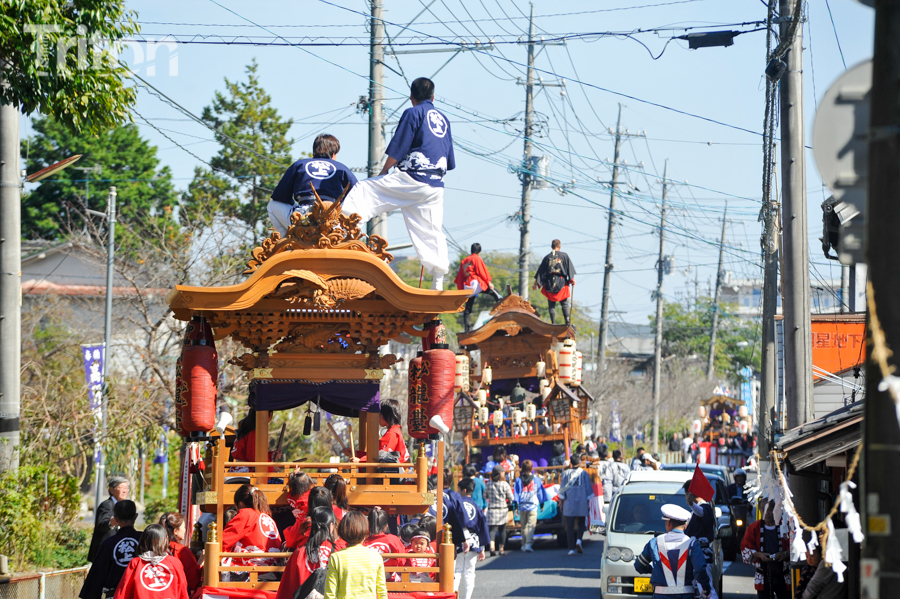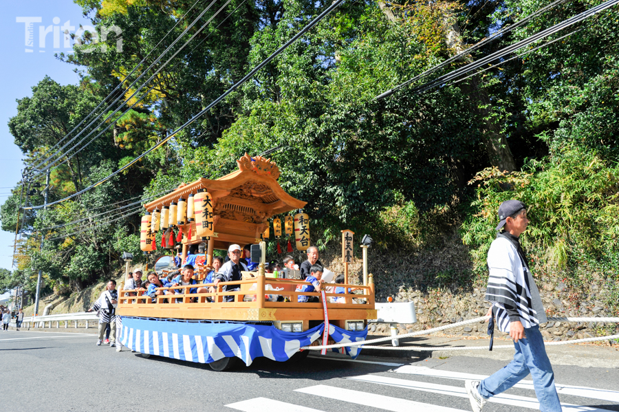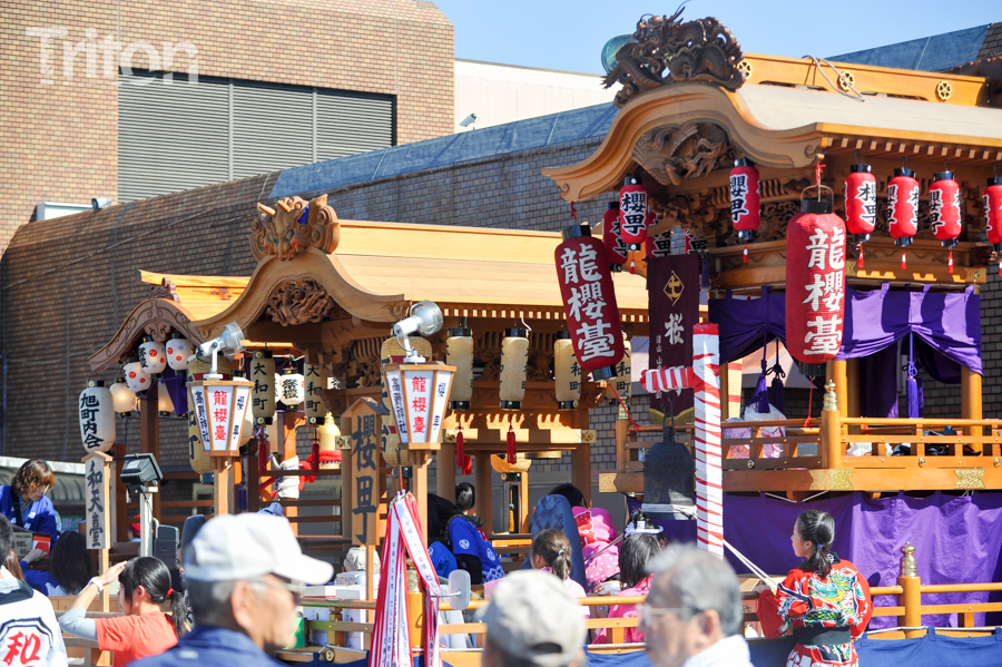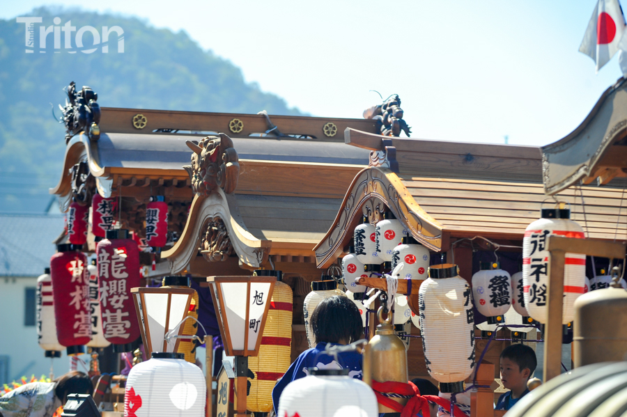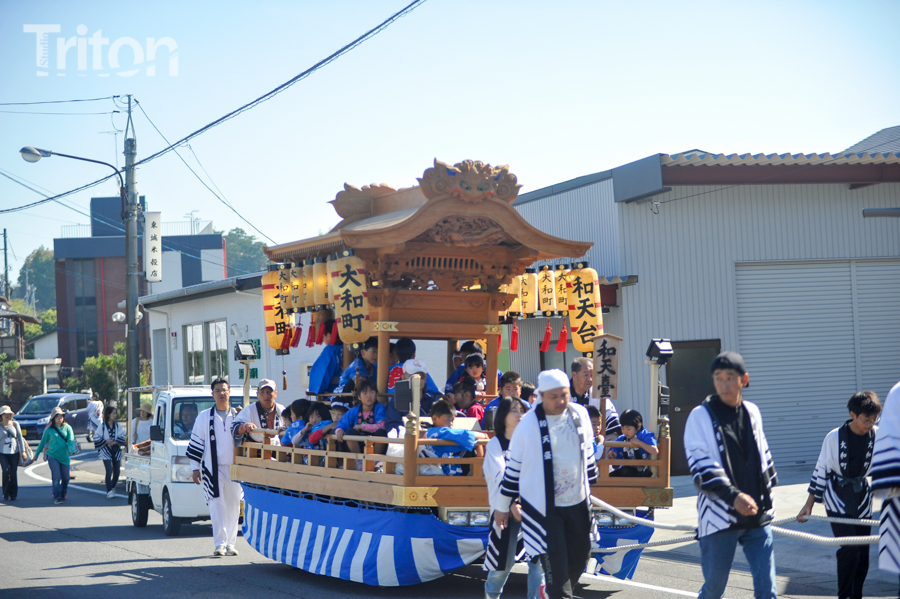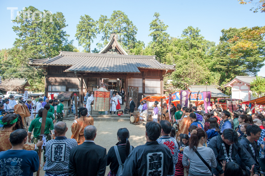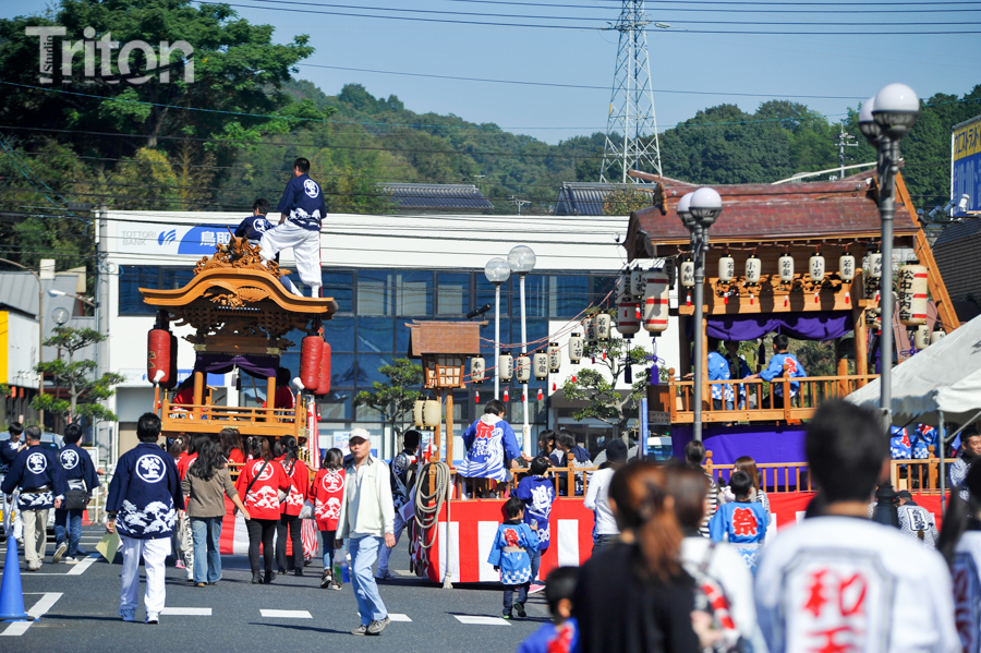 美作三大社の一社に数えられる美作国二宮・高野神社(津山市二宮)の秋祭が開催され、華やかに飾りつけられた山車11台が市街西部の旧道を練った。(2014年10月19日)